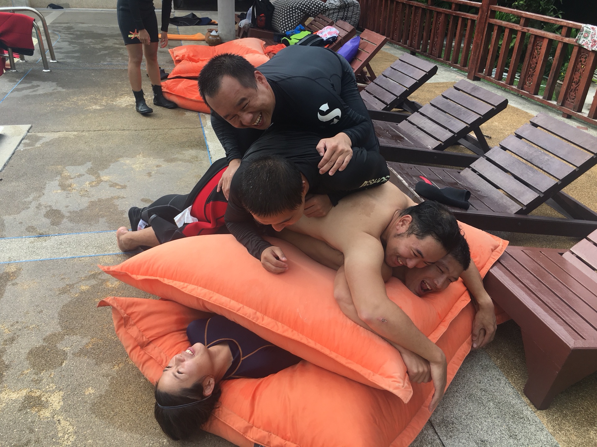 到海贼潜水来,是学潜水长以后的事了。在涛岛生活两个月,看起来很长,因为海贼,这个大家庭里所有的人,让我俩感觉2个月特别快,不想再离开,不想回到国内的城市继续尔虞我诈。又经过国内2个月的考虑,我和我老公(b哥)继续回来考教练,做潜水教练。
