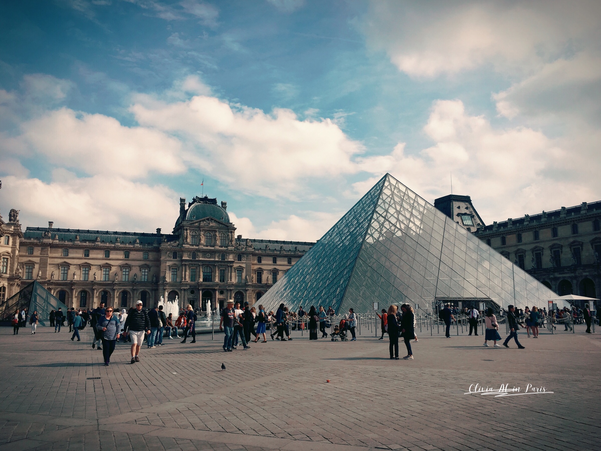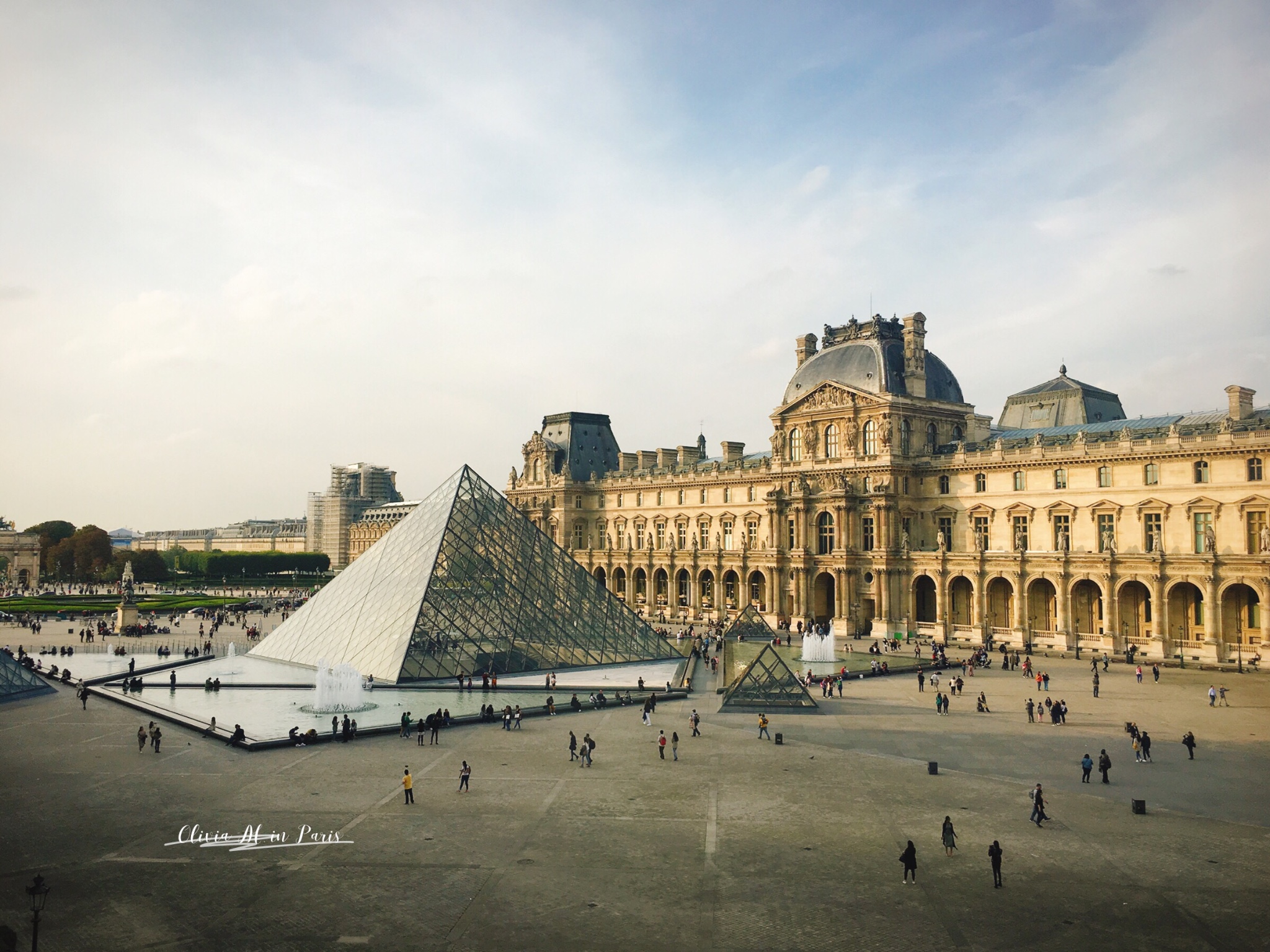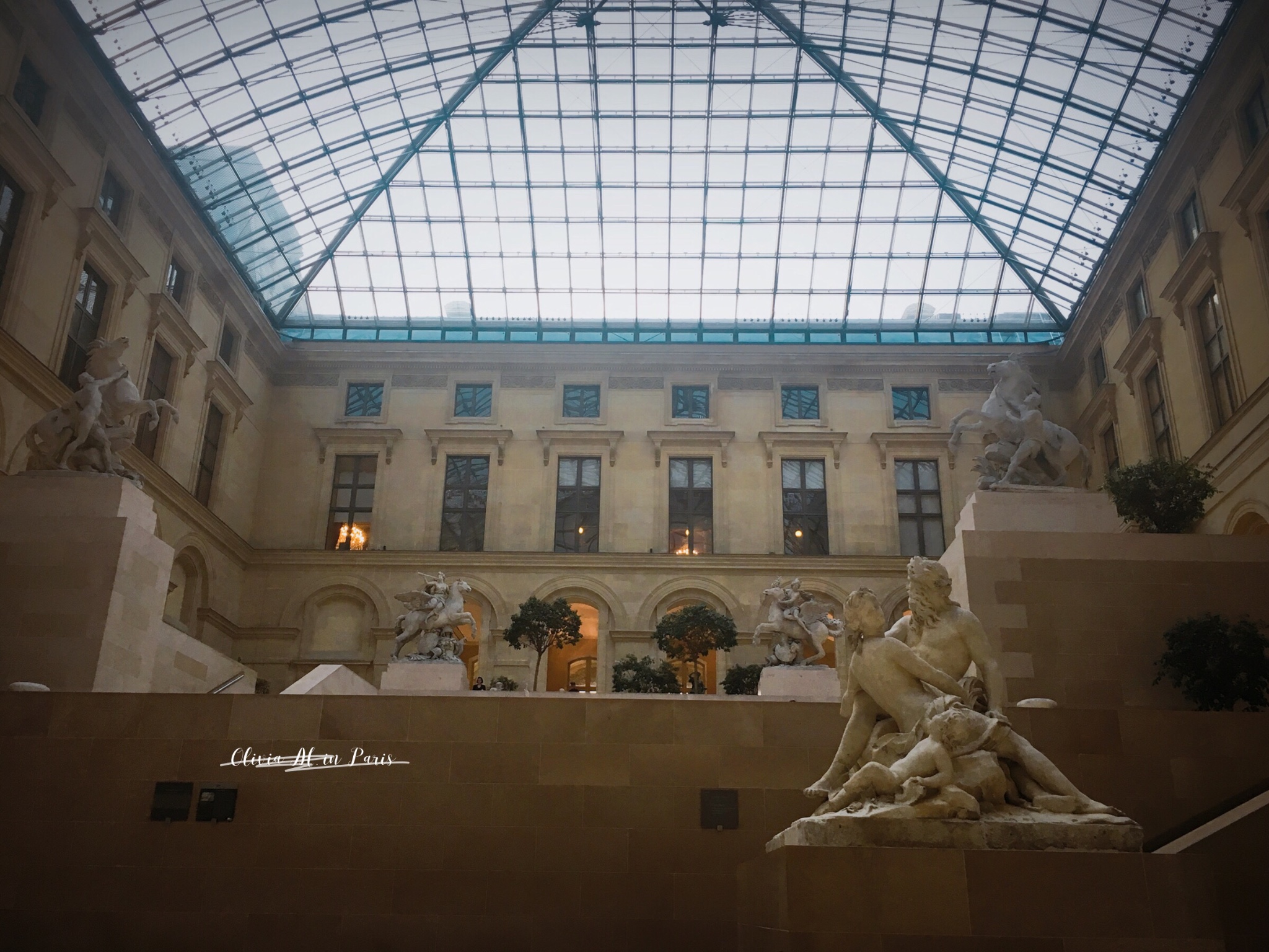到了酒店,收拾片刻,便出发去卢浮宫了~周三下午3点左右,人并不是很多,哪怕是正金字塔入口,稍稍排队安检,便进入了~