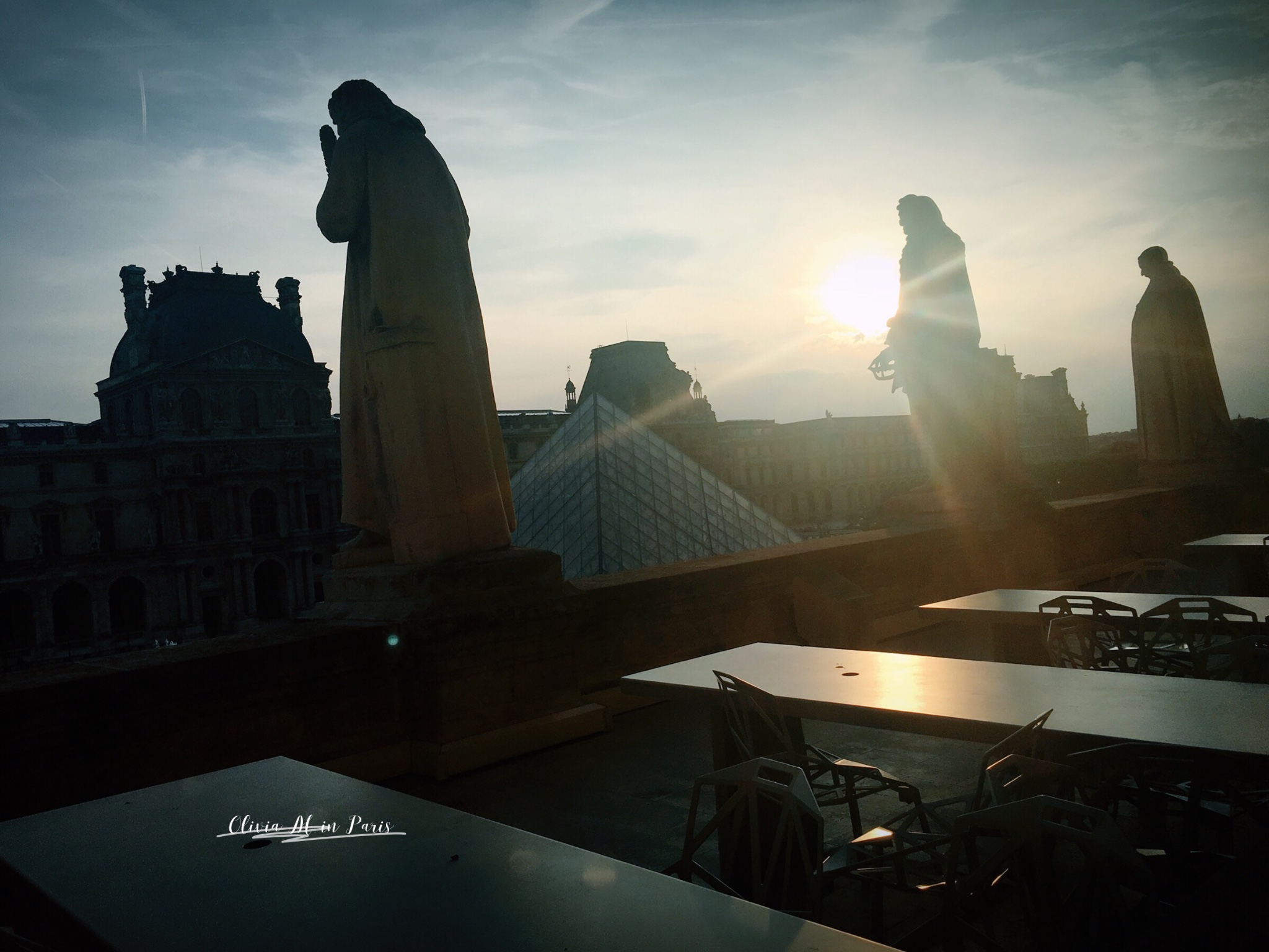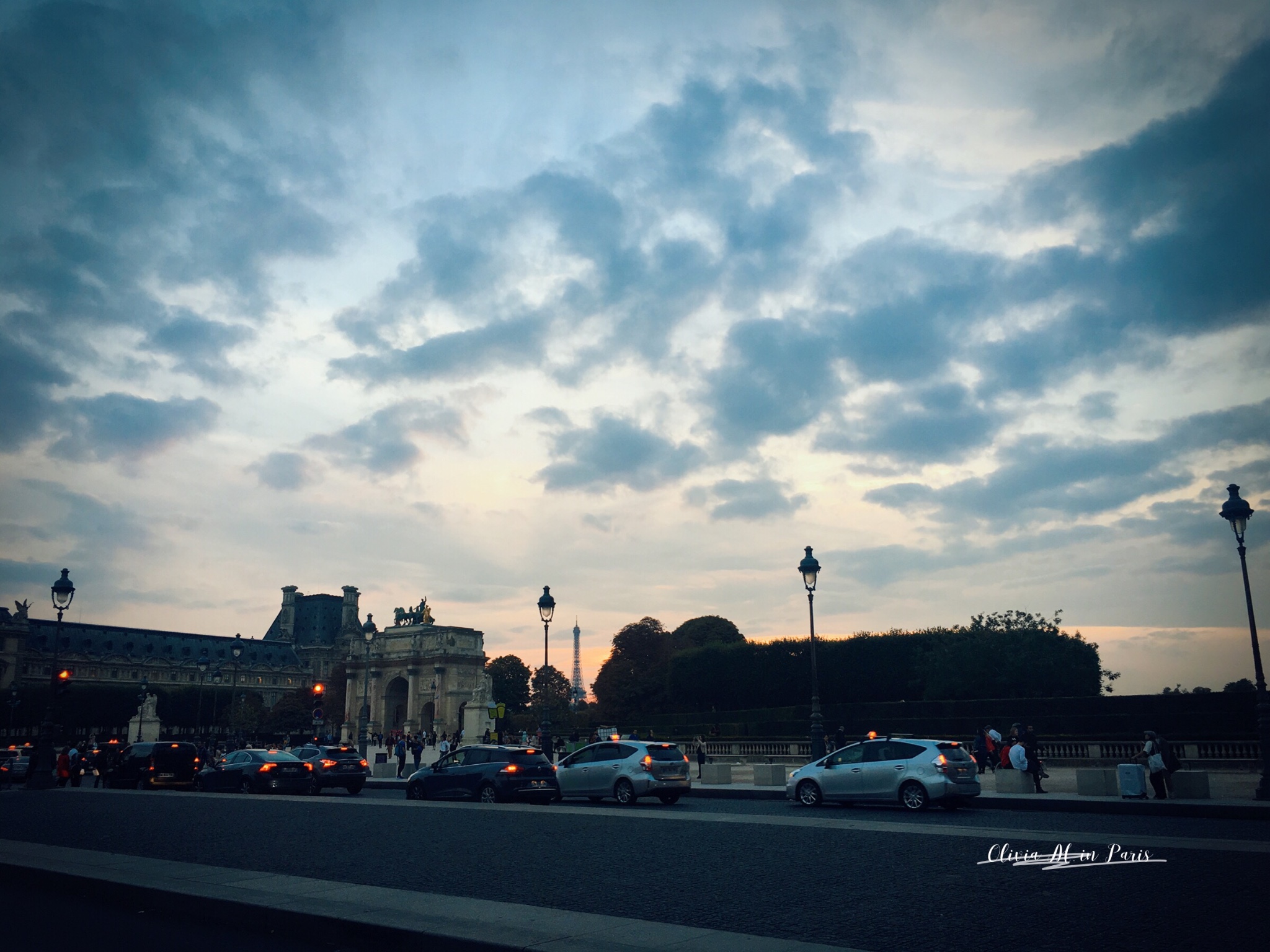 寻找卢浮宫的出口,结果从春天百货里穿了出来。太阳下山了,远处是埃菲尔铁塔~
