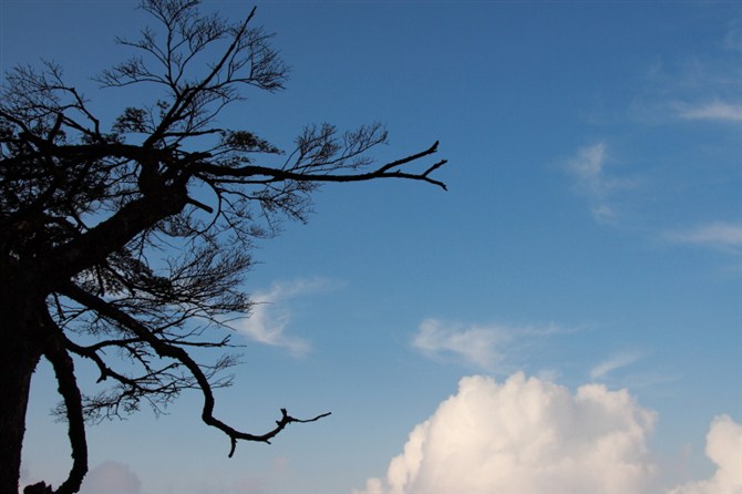 太阳落山了!树的剪影好漂亮啊,可惜没把树拍完!我豁不出去啊,下面就是悬崖,就一栏杆围着,我怕高