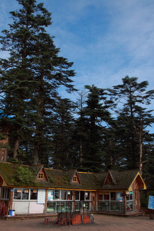 晚上6点多的样子,已经有点凉凉的感觉了。广场上坐了一些在山上住宿的人,大家一起聊聊天等着山上唯一的餐厅开饭!