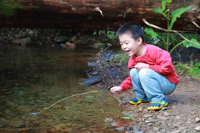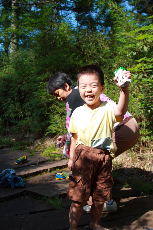 本来树儿准备打光脚,结果脚一沾地就叫起来,好冷啊!鞋子在瀑布玩的时候打湿了,树儿还是不嫌弃的穿着继续往前走