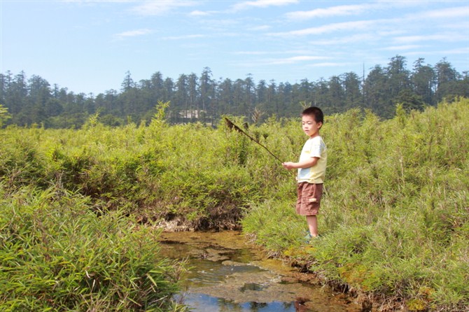 山上的水很清很凉,但是没有鱼!树儿你就不要白忙活了啊!