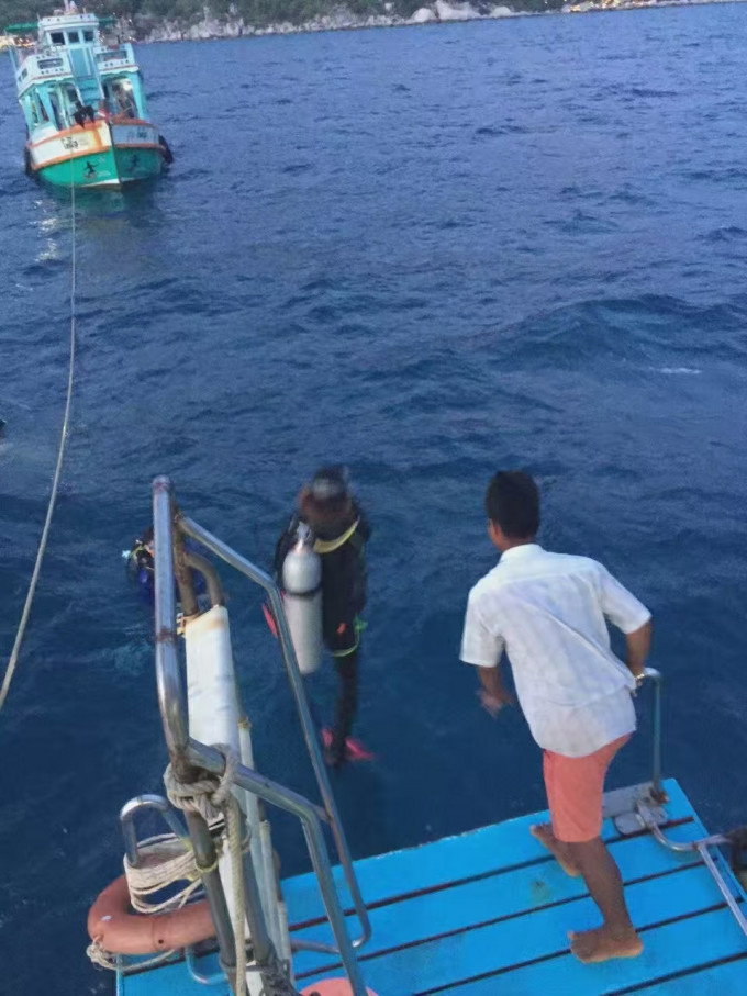 事件:大约在晚上5点多到达涛岛码头,由于之前在微信上和小飞教练联系过,所以一下船就看见小飞举着ASIA的牌子等候着我们,到达潜店后忙前忙后地帮我们订酒店安顿下来,态度那是相当的好,很有耐心地帮我们解决一些不太懂的琐事。后来我才知道原来小飞不只是海贼潜水的教练,而是中文组的负责人,在我看来就是海贼的大boss。一位大boss亲自帮我们忙前忙后,那么亲切一点架子没有,凡事都亲力亲为,我想这也就是为什么海贼潜水能够吸引大量游客,做得越来越好.扩展的越来越大的原因吧。