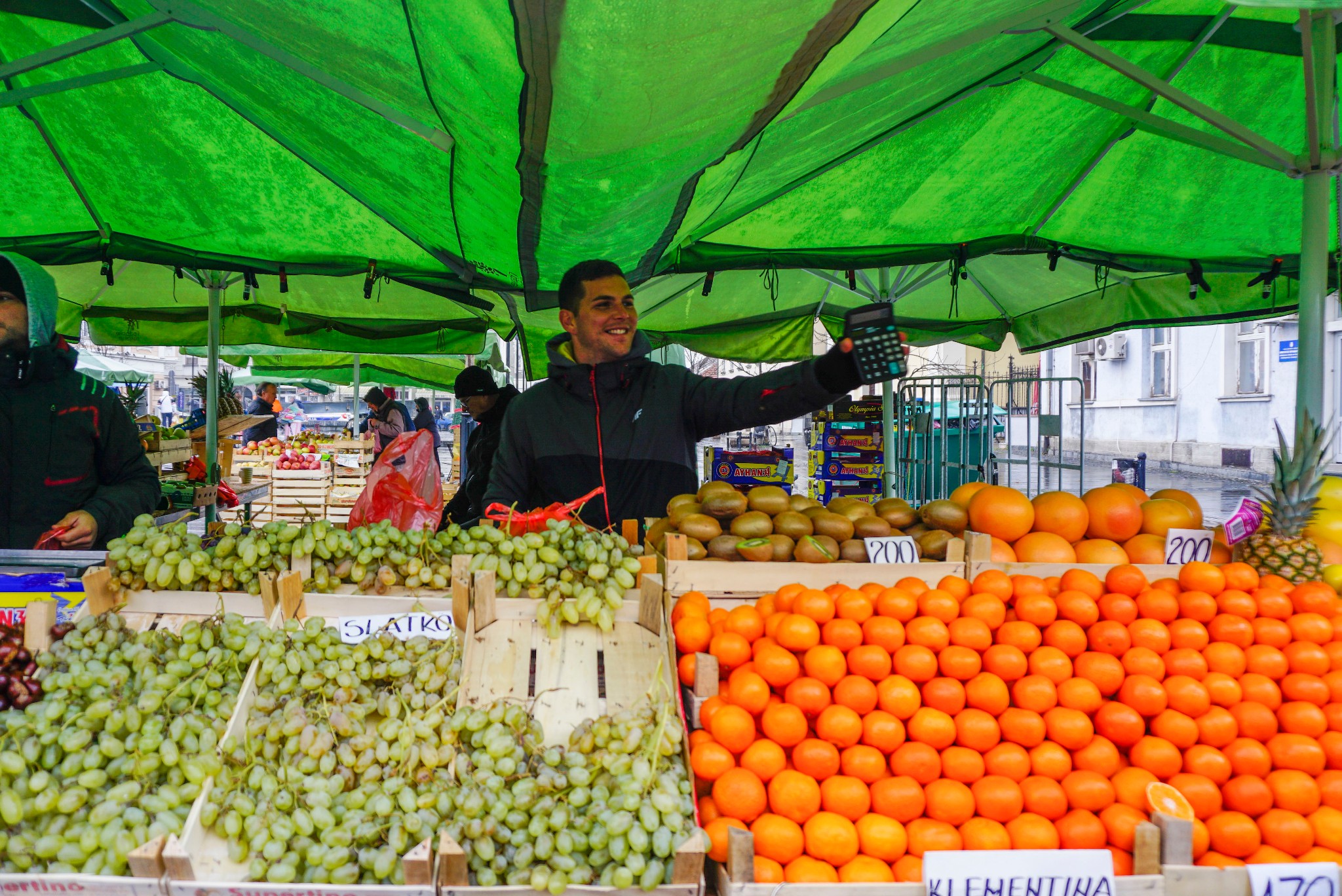 走过这条跳蚤小街,即是一小片市场,卖水果、蔬菜、奶酪、衣服等等,据说手工勾花的针织物是当地特色,可惜天太冷,看到漂亮的勾花服装我也没有下手的冲动。