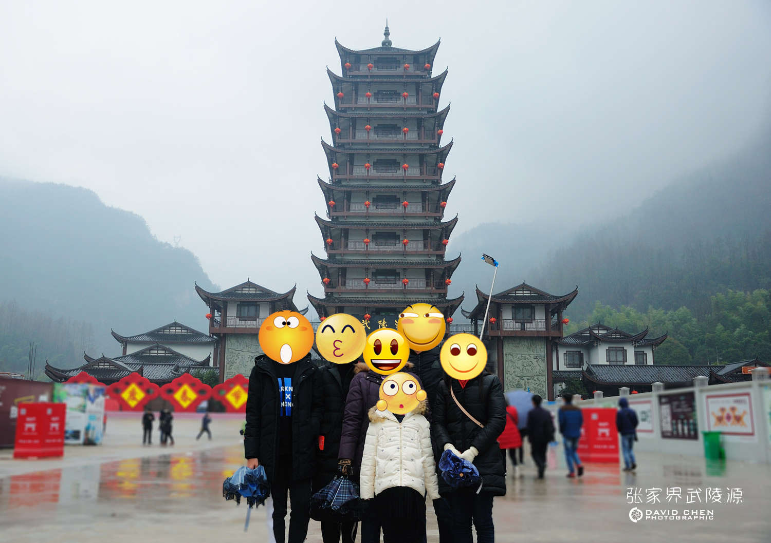 雨朦胧,伞朦胧,武陵人群涌。