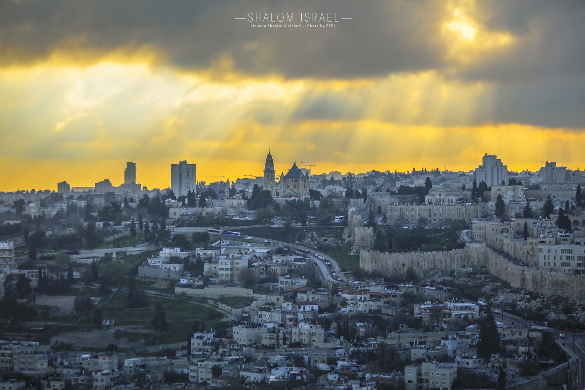 我在耶路撒冷的橄榄山上,遇见了耶稣光芒,洒下了整个古老的旧城。