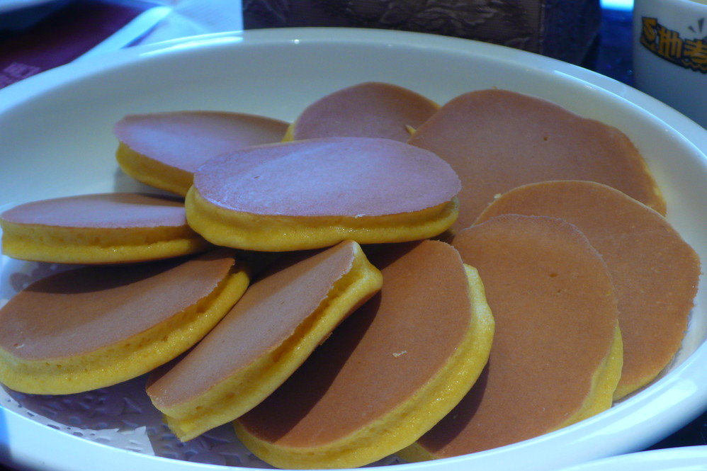 在豆地主吃的玉米饼,长的很像铜锣烧吧。这家店的土豆做的很好吃~其他菜也不错~太饿了,只照了这一张照片~