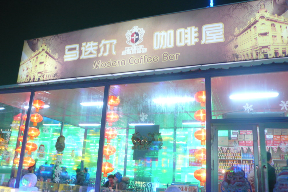 参观完教堂后,我真的感受到了哈尔滨的冷,耳朵、脸、脚都很冷。手拿了一会儿相机,感到更冷。找了一个暖和地方喝点热饮,稍作休息,前往了俄罗斯小镇。