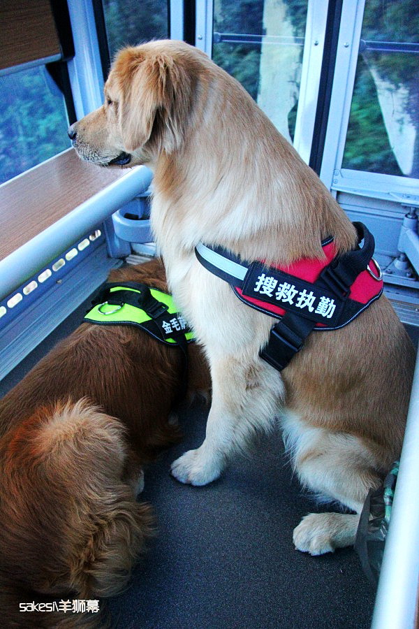 上下缆车的时候,缆车运行速度缓慢,所以很适合狗狗上下,当然萨克斯是老江湖了,每次它都是直接上缆车,小萨还犹豫了几秒钟才上,习惯就好。