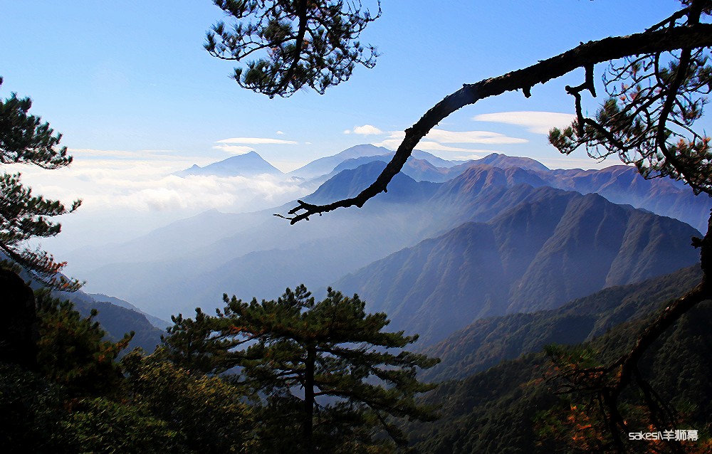 武功山我和萨克斯曾去过两次,明月山去过一次,其中武功山海拔1918.3米,明月山海拔1735.6米,羊狮幕海拔1764米,同属武功山脉。