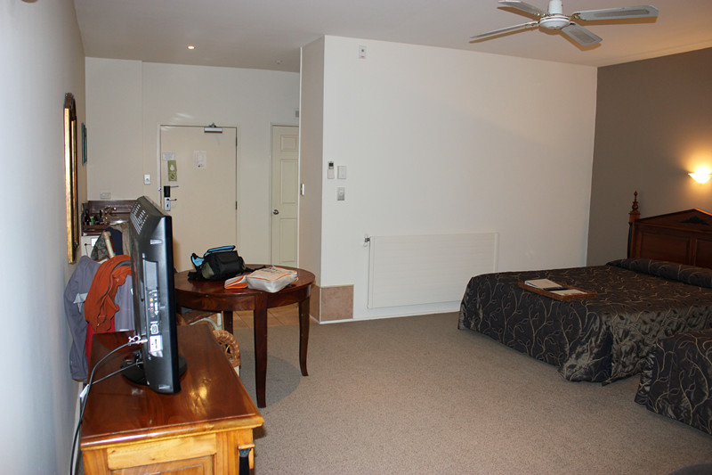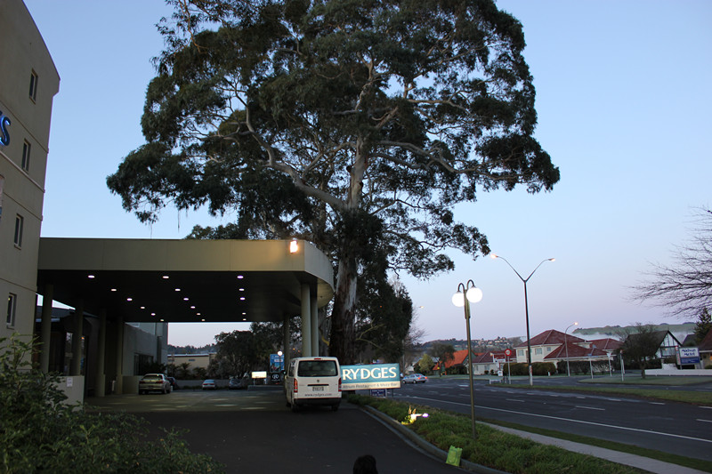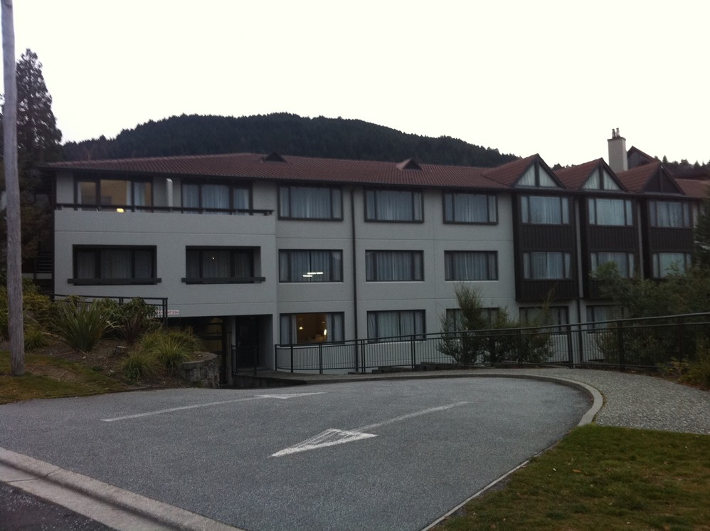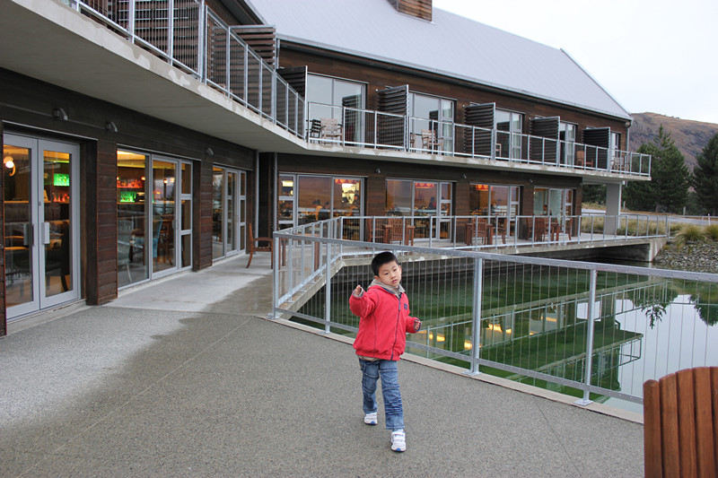 酒店门口,这酒店很不错.是NZ住的最好的一家。估计跟小城市有关系.但是媳妇坚持认为QUEENTOWN的酒店比这好.