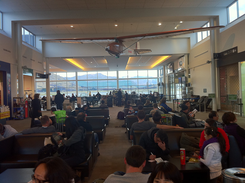 9点.有登上去基督城 的飞机。国内航班。明显飞机旧,但是服务很好。很热情友好