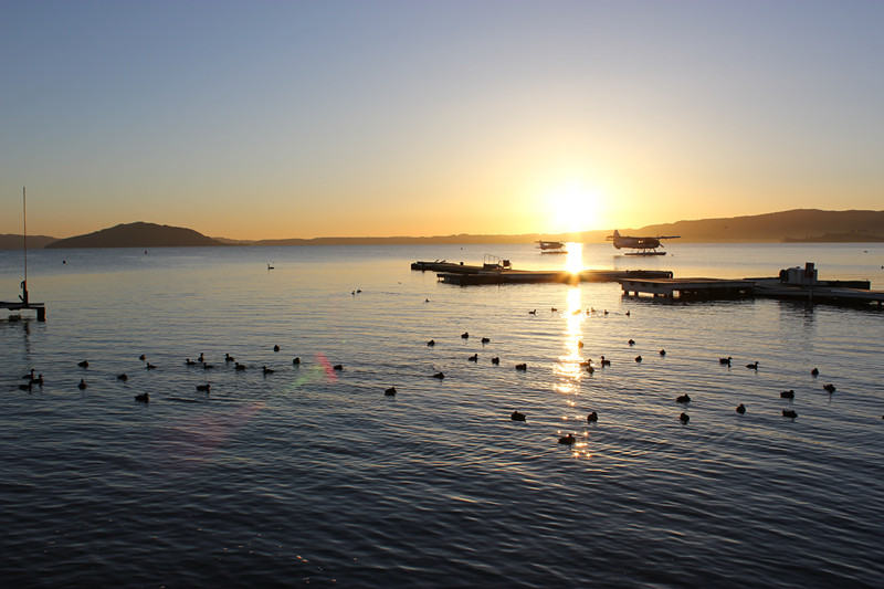 RUTORUA的湖,清晨,太美了。注意有架水上 飞机