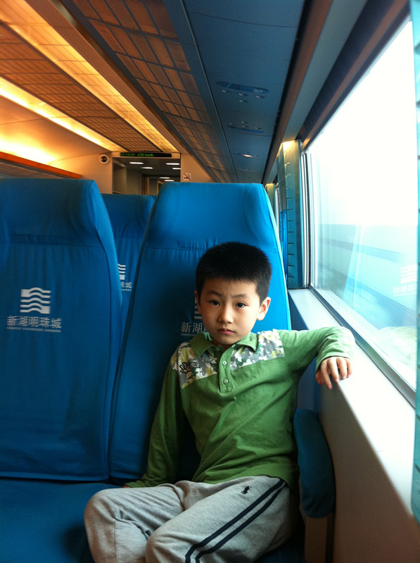 行李2个背包,一大一小2个拉杆箱,还有2个零碎的包。出门临时拦了辆出租车。直奔龙阳路,杨浦 大桥上,儿子来了句:这不是去朱回笼叔叔家的路么?呵呵。没错,但是我们去的更远,地球的另一头。。天气不好,中午了还都是雾。到龙阳路,小孩磁浮不买票,真实惠。省的麻烦,直接刷交通卡。
