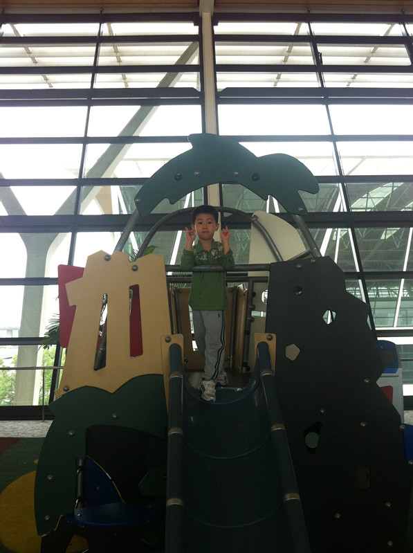 12点导游才来,儿子已经在机场里奔了好几个来回了。。讲了点注意事项,就直接CHECK IN。办的很顺,一会就过海关了。。媳妇一见日尚免税,疯狂的扎了进去。我带儿子闲逛。。。。。国际入口被国内要好很多。儿童乐园都很专业。