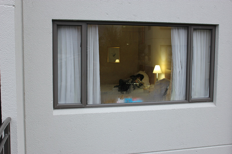 宾馆里,床有点小. 窗户有点漏风,空调也不給力,半夜冻醒了.
