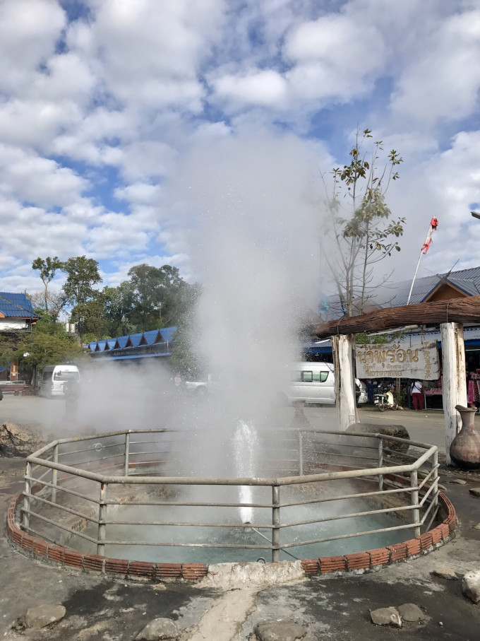 温泉广场其实就是个半路的歇脚点,有当地人卖小篮子生鸡蛋,可以放在温泉里煮熟食用。我们直接去了小温泉泡脚,很解乏,泡完后皮肤滑溜溜的。