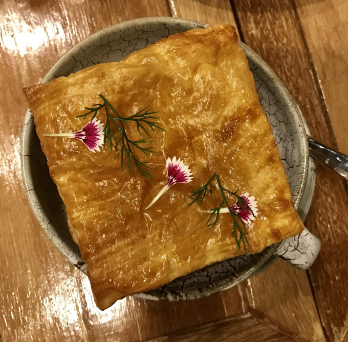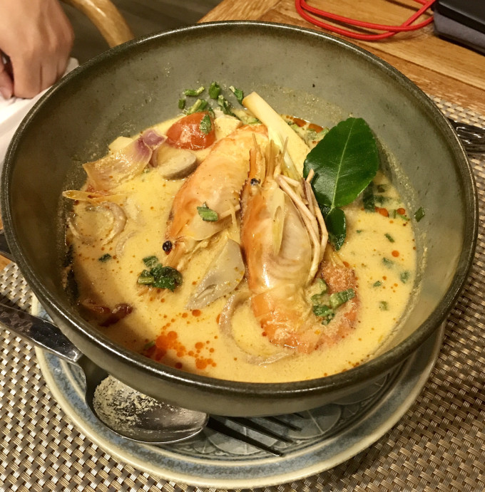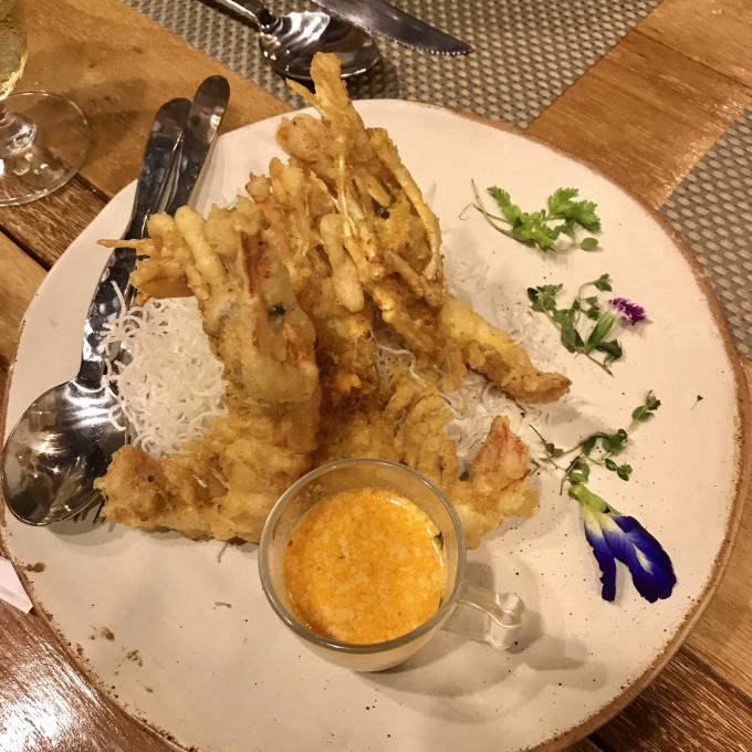 点了牛肉、酥皮汤、南瓜汤、炸大虾和甜品等,服务员介绍主厨是泰国人,西餐做得很棒。