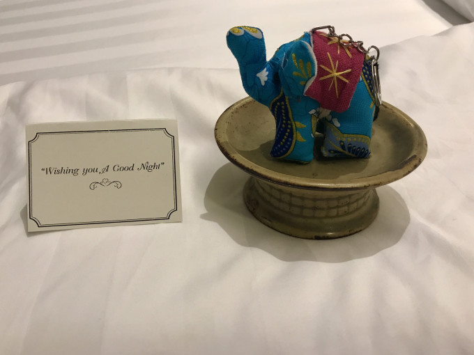 进房后,看见已经铺好了夜床,床上放了一个可爱的小钥匙扣,后来带回家作纪念了。