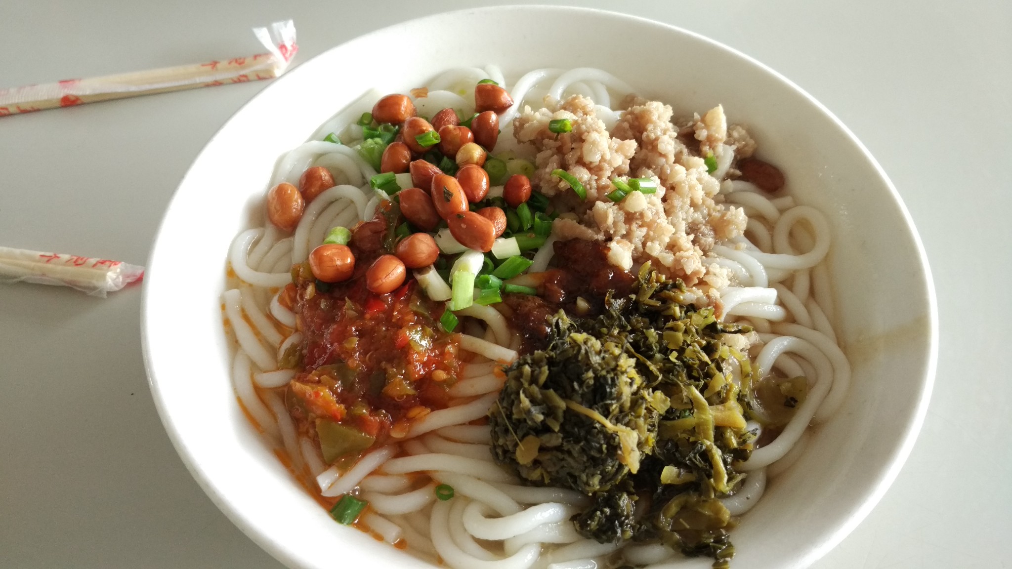 机场对面有9路公交去安顺客运东站,约一小时车程。到了东站,买好12点去黄果树的票,在东站餐厅吃了一碗肉末粉。看上去干净,味道也不错,8元良心价。