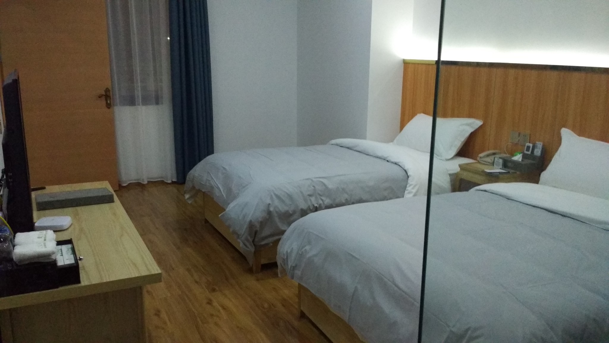 紫云~城市微酒店,当晚赶不到格凸河,临时找的这家,在格鲁王广场对面, 算是市中心了,广场旁边有一个大型超市,交通和购物都很方便。快捷酒店的标配,提供两瓶饮用水。