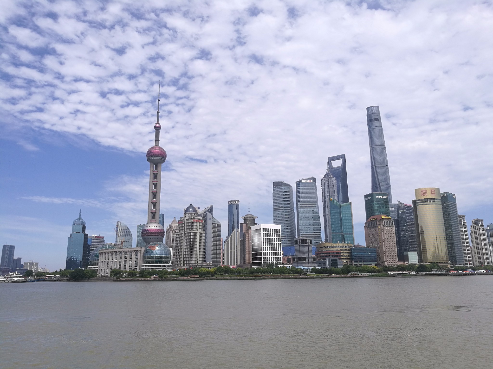 6月晴天时的外滩和陆家嘴。