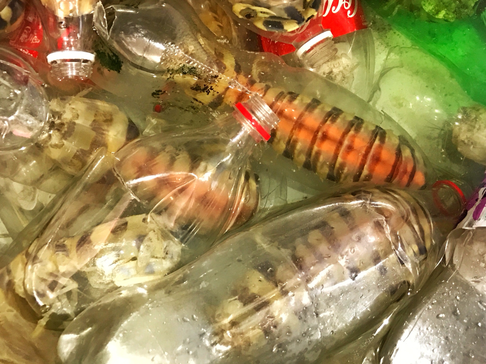 大大的赖尿虾,被一个一个的单独装到大号的塑料瓶里面。