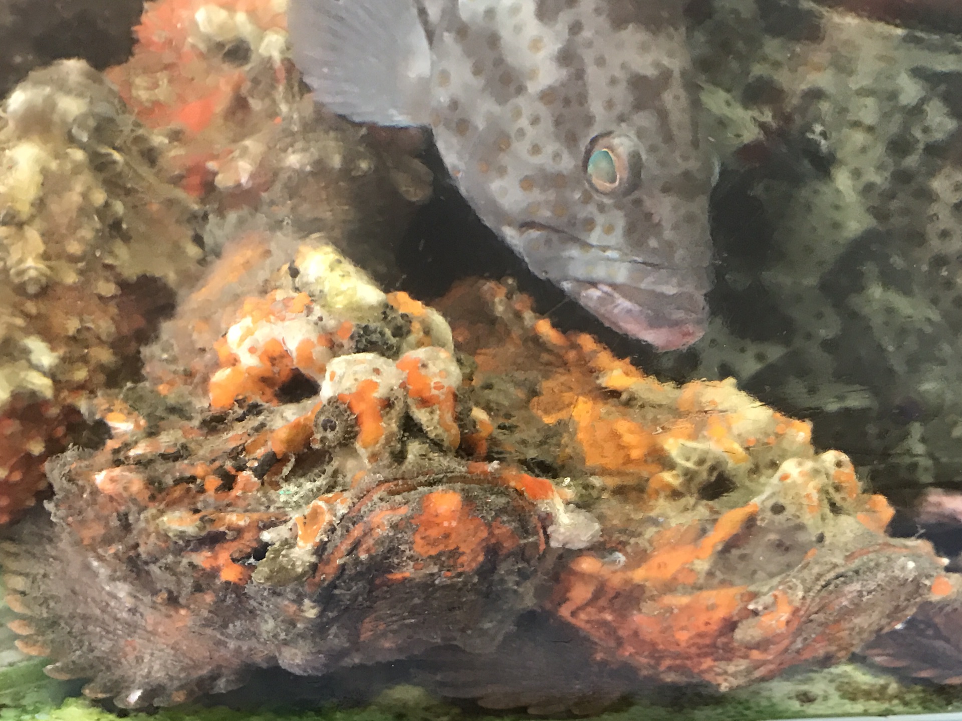 石头鱼真的长得很奇特,像块烧红了又烧黑了的砖头。