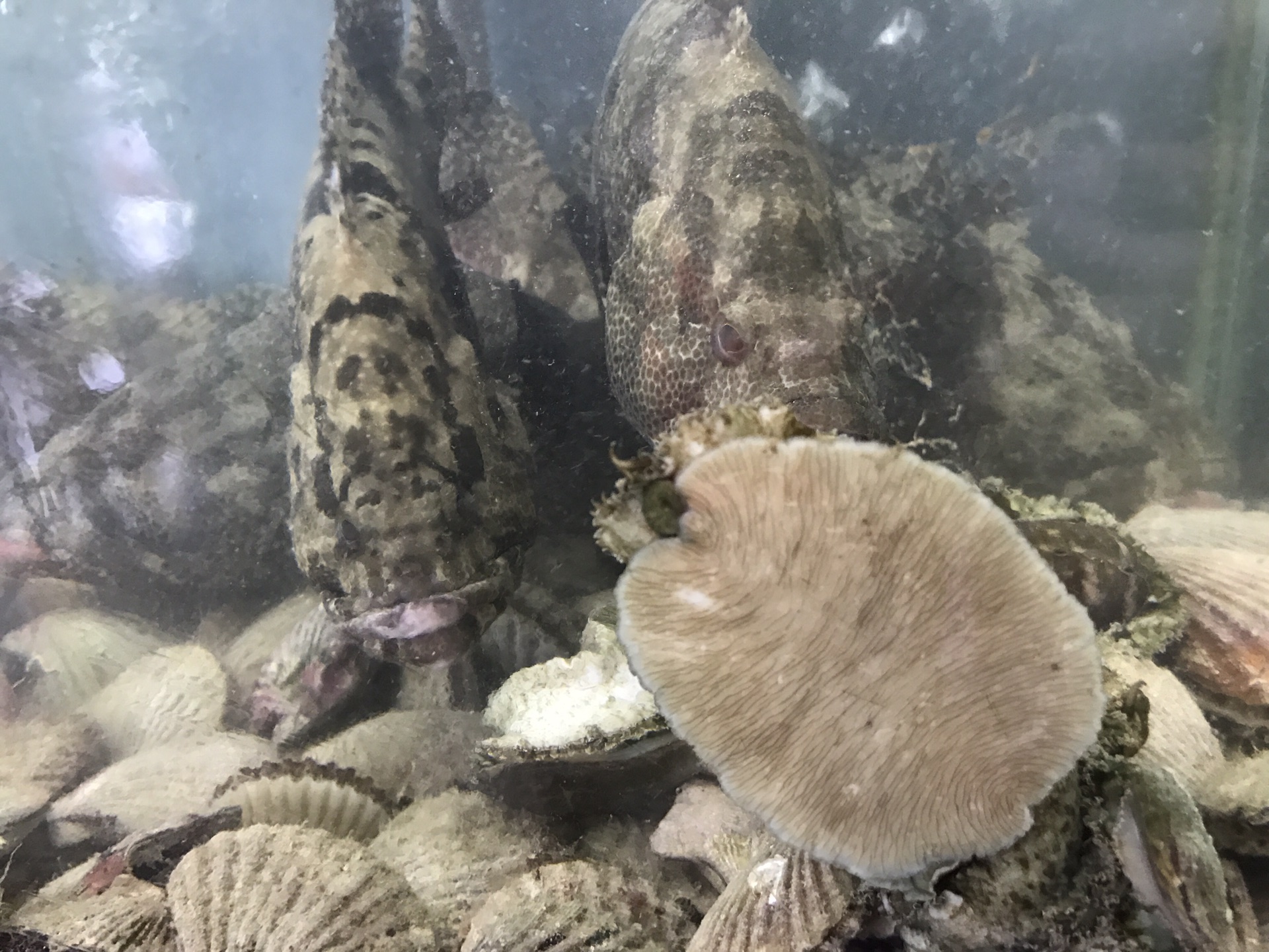 小扇贝煽动着贝壳,鲜活的在鱼缸里追逐。