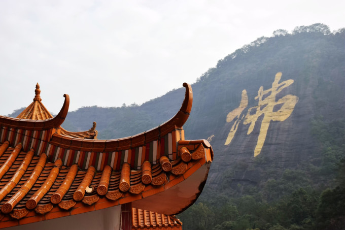 天下第一大佛字,系赵朴初先生绝笔,高108米,宽88米,为世界上最大的佛字,写在一座佛形的山上,故有“山是一尊佛,佛是一座山”的美誉。