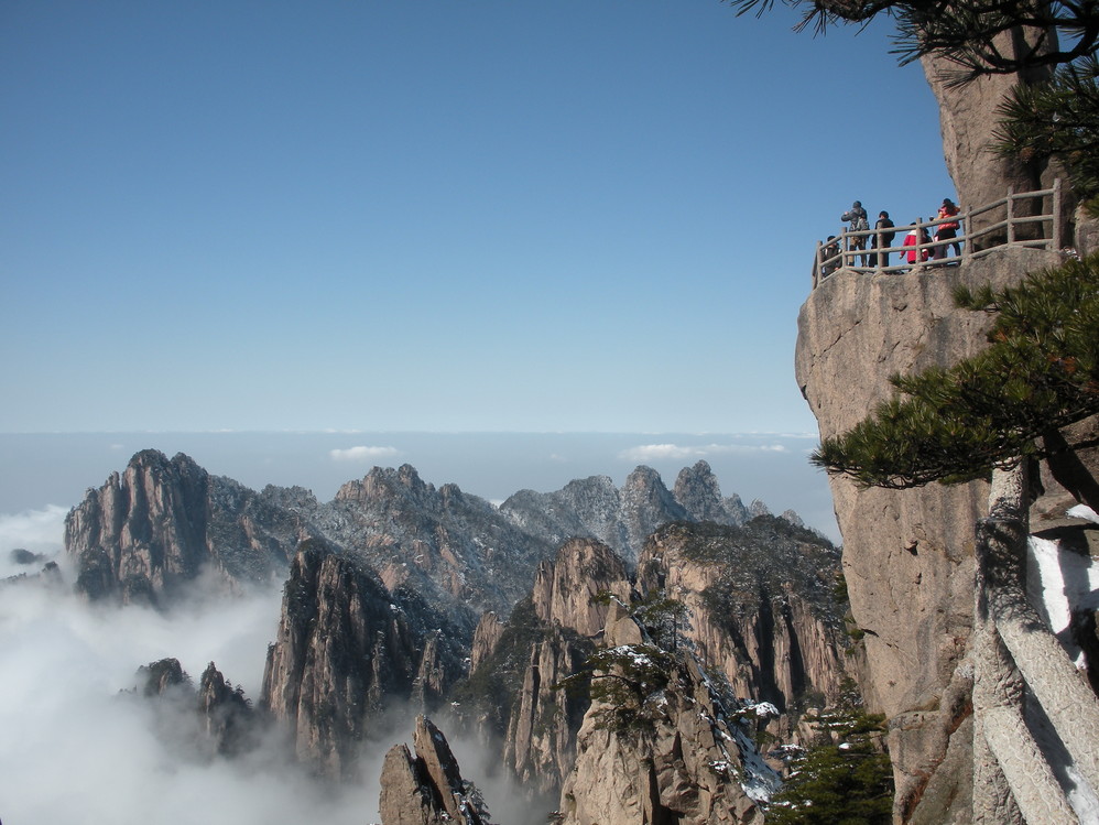 出游之前,有网友提醒说,春节期间黄山的接待能力不足,需提前安排。到底能有多少不足?心里一阵嘀咕却也不以为然。考虑到山上的宾馆都比较昂贵,计划着一天上下山,大不了第2天再上山好了。事实上,当我们赶早班巴士到缆车点上山就遭遇排队长龙。官方公布的头班缆车为6:30,直到7点,售票窗口才慢慢开启,无语@^@ 缆车票买好,又需重新排队上车,整个车场慌乱而无秩序,随意插队到处都是,人多哦。下了缆车已经快9点了,这时间耽误的。
