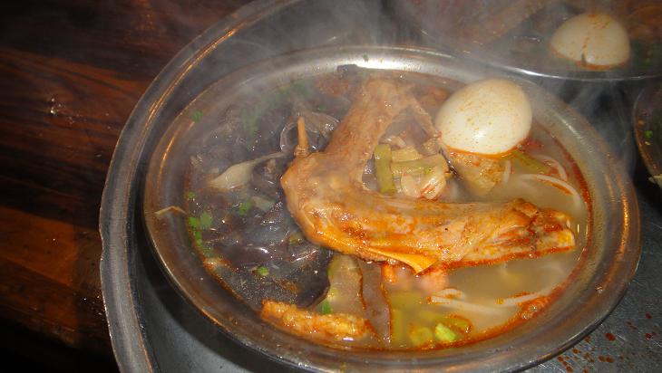 在这里吃螺蛳粉的当地人非常多,与同餐人交流,该店是柳州螺蛳粉的老字号,柳州人也很爱吃螺蛳粉,每周都要吃上几次螺蛳粉解馋,自我感觉螺蛳粉就是将磨好的米粉晒干,在卤肉汤中煮熟加入各种卤菜及辣椒制作而成,吃起来米粉比较筋道有嚼头,到并没有什么特别的感觉,每碗5元,加其他卤肉需另外花钱,一个鸭翅3元,卤鸡蛋2元。