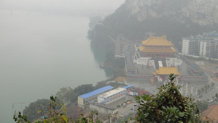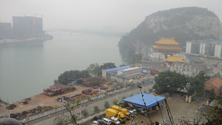 驾鹤山顶所拍:柳江边孔殿全景图(据驾鹤山工作人员说,该殿是华南地区最大的孔子殿堂)