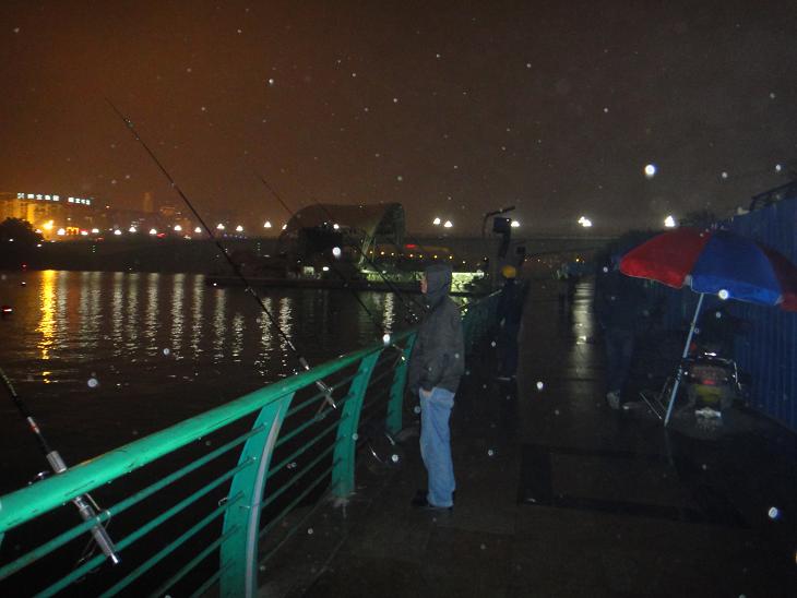 夜晚10点多钟,柳江细雨蒙蒙,江边时有放孔明灯的路人,祈福新年心想事成,些许渔人江边垂钓,夜虽阴冷,却挡不住那份收获的期待。