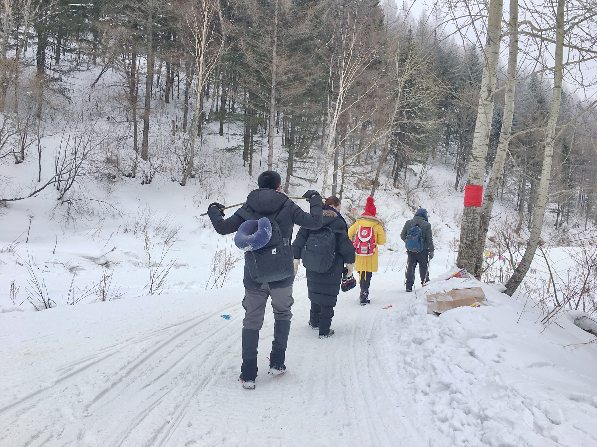 步行一半上山路满眼白色,南方人的我特别喜欢,同时特别累特别想雪地摩托快出现。