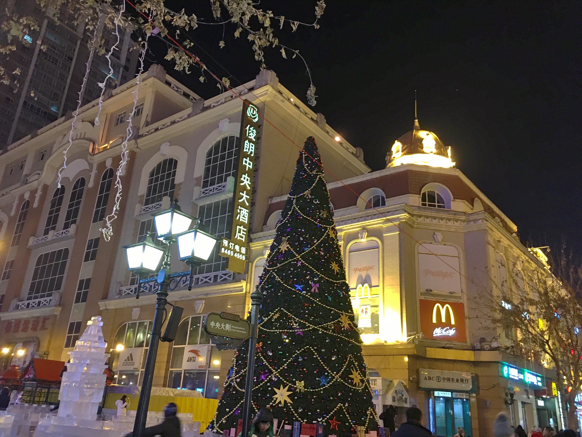 中央大街,适合晚上去,夜景很棒。12月中旬随处可见冰雕。人来人往,热闹非凡。
