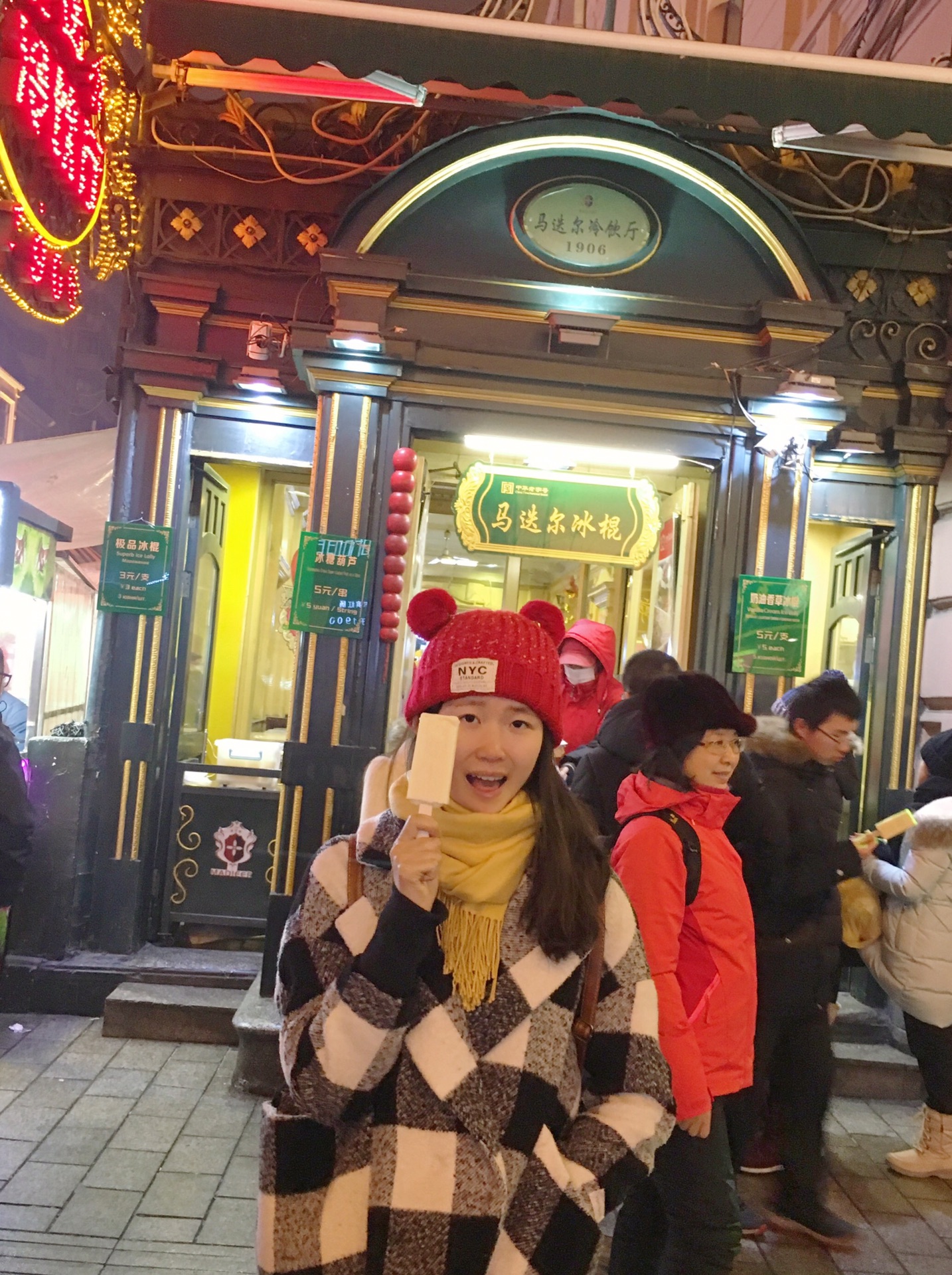 马迭尔冰棍值得尝试,在零下吃冰棍特带劲。酸奶门口买贵很多,得朝店里走价格便宜。