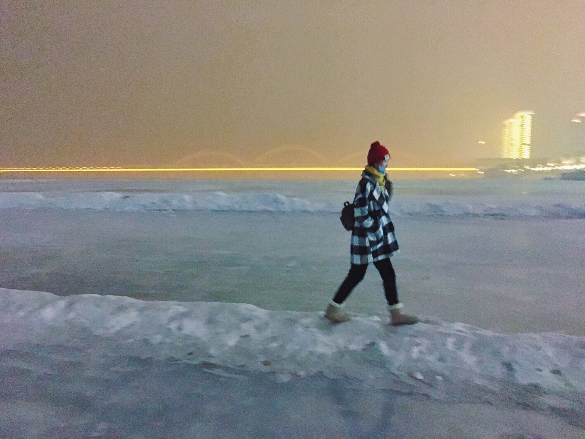 松花江在中央大街的一头。有很多游玩项目,坐了摩托拉圈酸爽,风打在脸上倍冷。