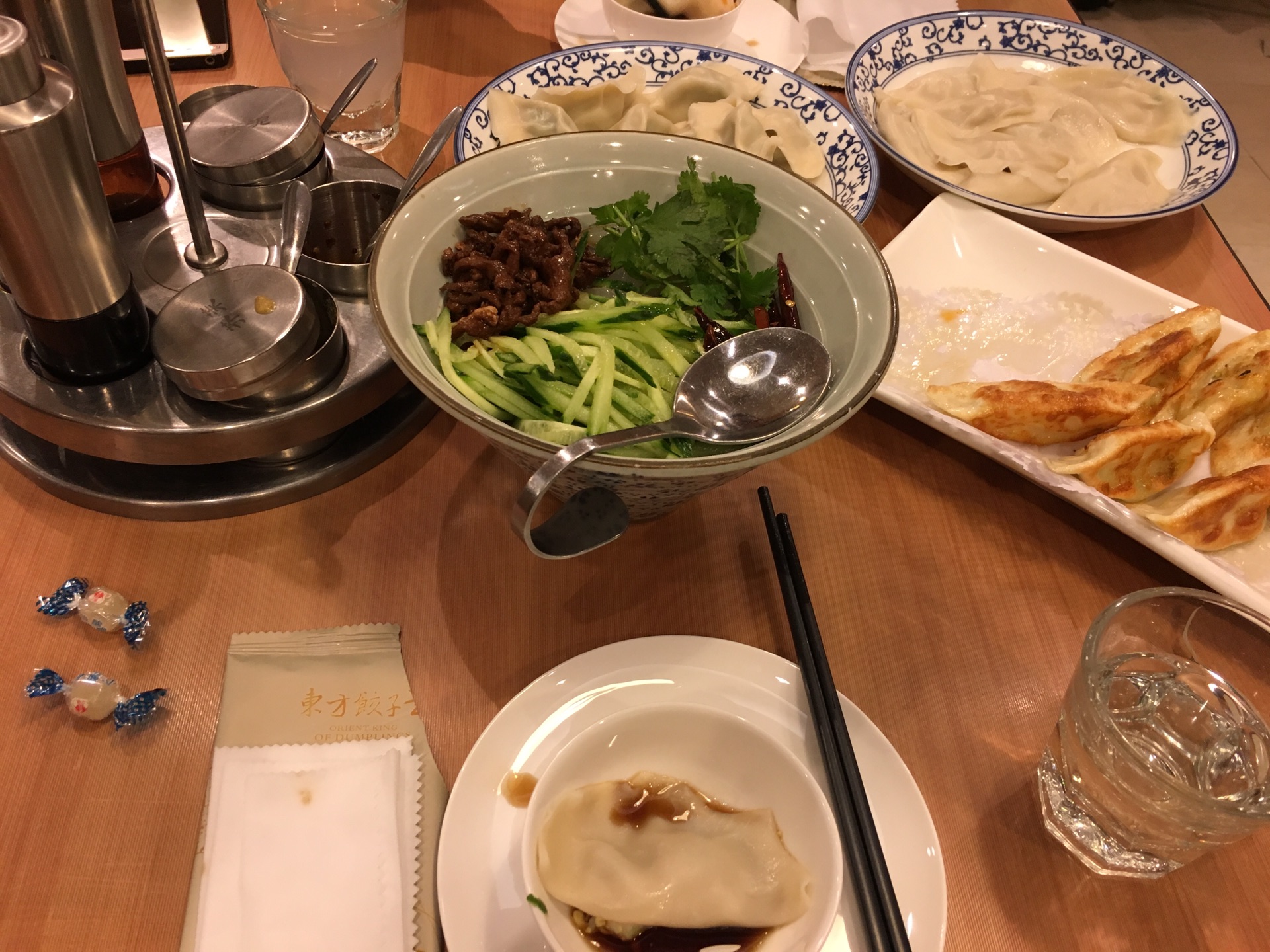 关于饺子,吃了2家,连锁店饺子大同小异,试1家便可。对东北饺子很失望,原以为是很大个饱满的,实际如图是瘦弱型~