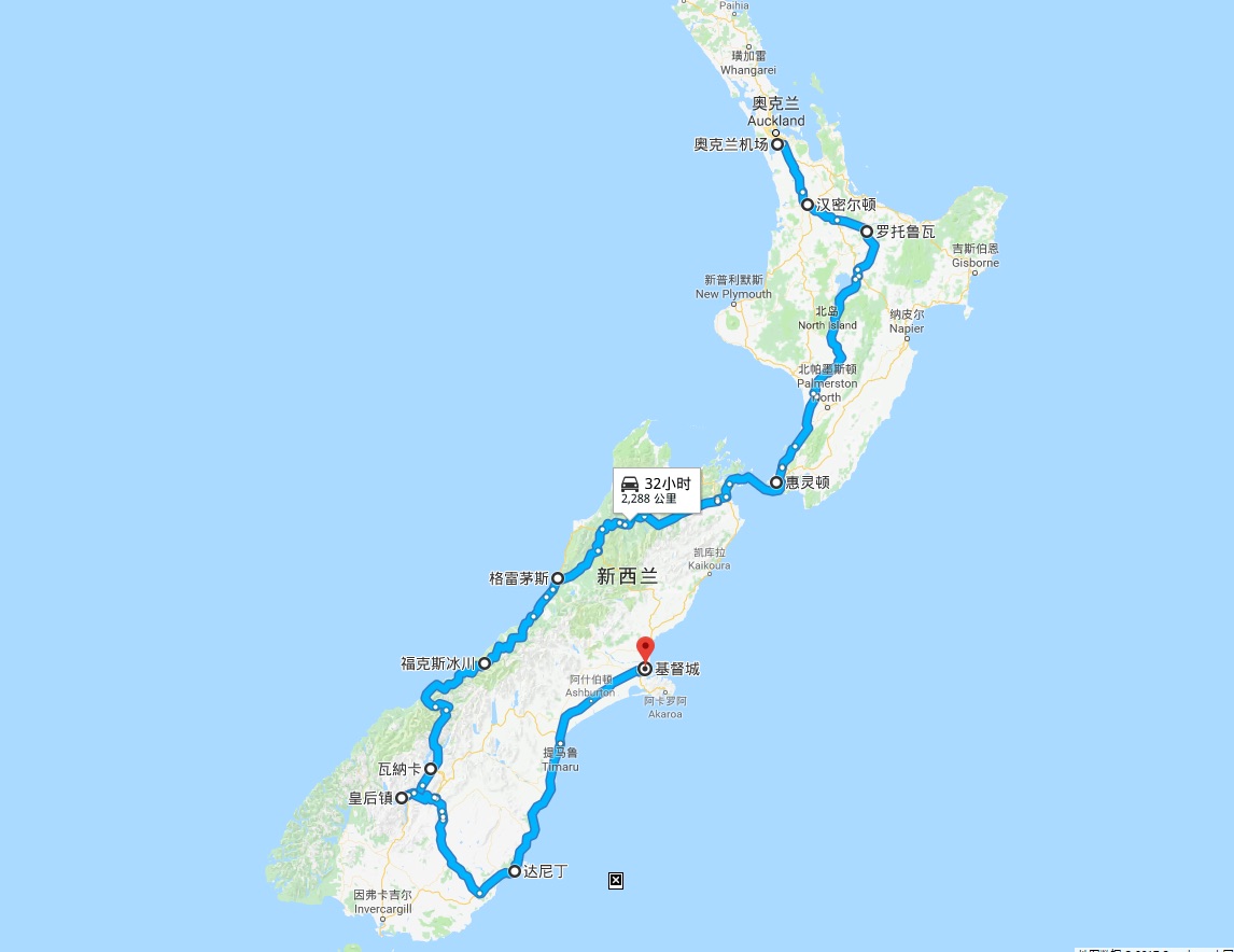 当行程定得差不多得时候,突然发现一个很严重得问题,就是从罗托鲁瓦到瓦纳卡,根据导航提示每天的车程至少在5个小时考甚至更多,考虑到车上有baby和爸妈,又秉着一贯得旅游态度,自由行就是为了放松得,不要把自己搞得跟旅游团似的,所以坚决放弃了。但是当时国际机票和大部分住宿已经完成,后来研究有的住宿是可退的,有的则是不可以无责免费退的,所以重新研究了下路线,制定了第二版路线。