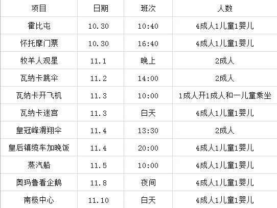 2.也是最重要的,机票便宜。其实去年我们就有意无意的去关注到新西兰的航班,基本南航奥克兰往返都是在3300左右,去之前我们随便挑个日子都找不到4000的机票了,lg就觉得可能明年价格会更高,赶紧提前订了,提前去。算是了却一桩心事了。于是抄了个低价,6个人(含儿童1枚,婴儿1枚)机票总计1.9w不到。baby们可以参考一下。