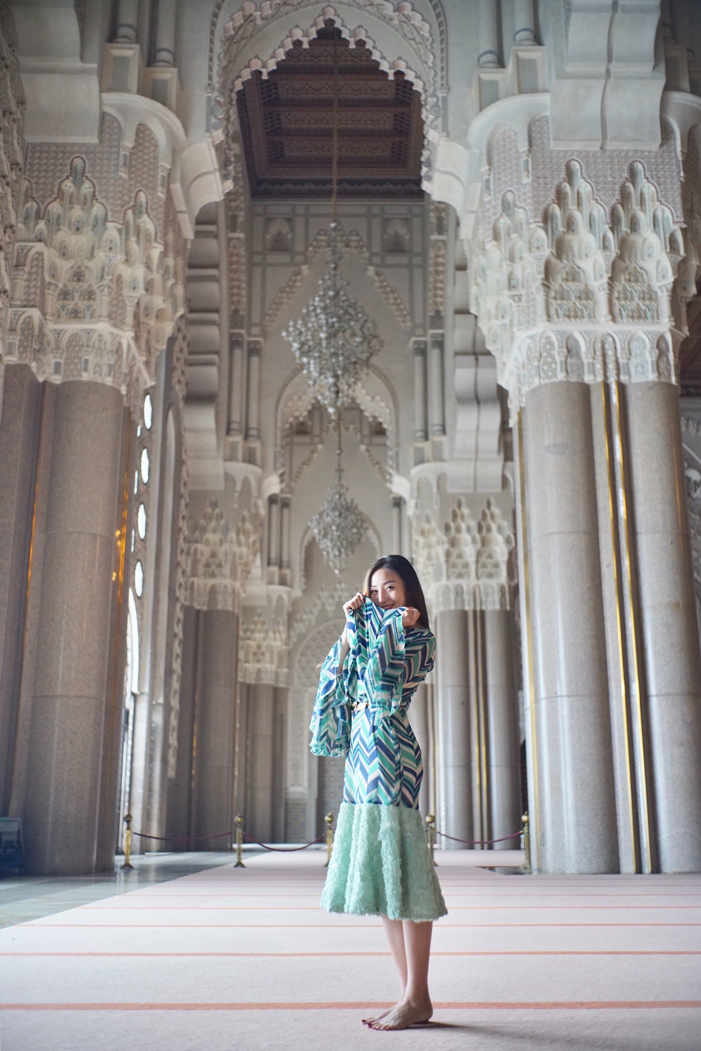 曾在马来西亚沙巴的海上清真寺流连,本以为已经领略了清真寺的极致,却着实被世界第三大哈桑二世清真寺震撼到。清晨雾葛像伊斯兰纱巾般环绕,犹抱琵琶半遮面。经过转角,只有两个字能形容她:巨大。