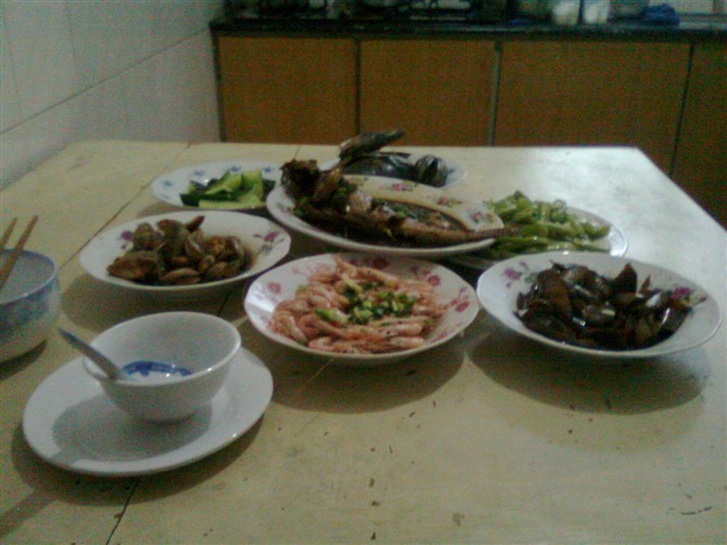 图片不清晰,不过看看就好,别嘴馋啦!(本地人自家做的海鲜,个人感觉蛮好的^_^)
