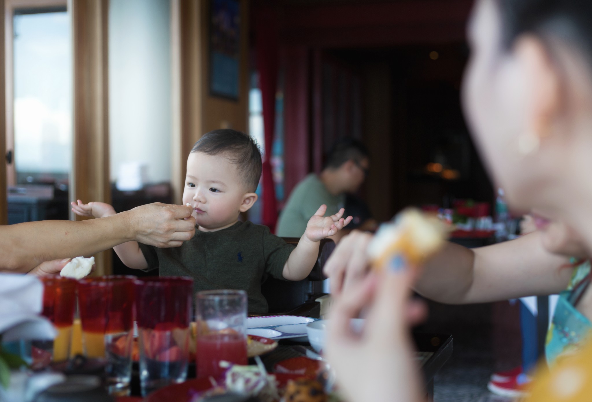 在家哄泰山吃饭,是我觉得特别苦恼的一件事情,他坐如针毡,家里的儿童餐椅也成了他堆放杂货的摇篮。可是每一次旅行,都会给我带来很多惊喜,当我们坐在餐厅里,周遭坐着来自不同国家的乖乖吃饭的小朋友,泰山也会不由自主的自己学习起吃饭来。特别是和另外一个小朋友一起去香港的时候,从来不愿意吃米粉的他,居然和其他小朋友争起宠来。对于小吃货的表现,我们从来不会担心他出门会饿着。