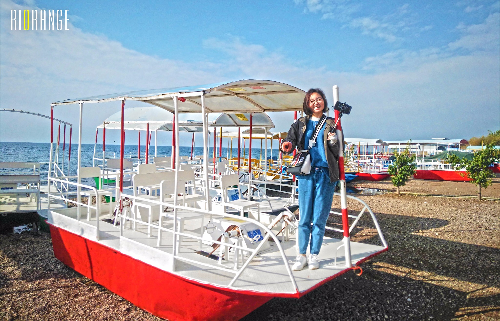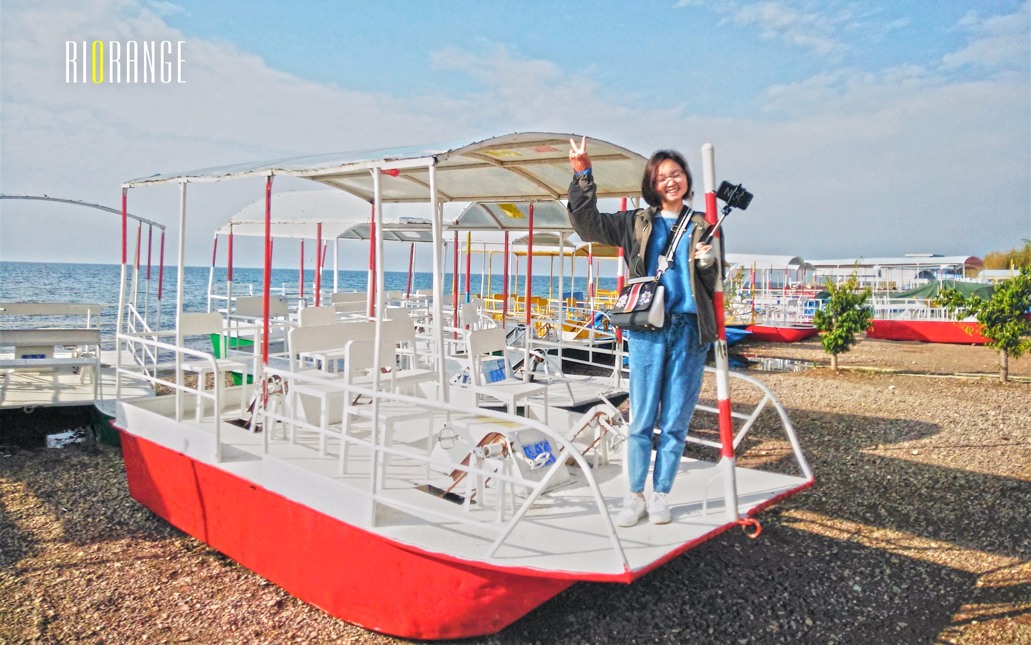 站在船舷,张开双臂,恨不得一下子跳进去!