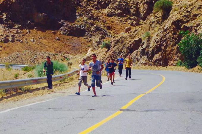 去沙漠的途中抓拍到一群公路上奔跑的孩子,实际上这段公路前后很长的距离内都没有村镇人烟,不清楚这些孩子为什么奔跑,也许是在比赛