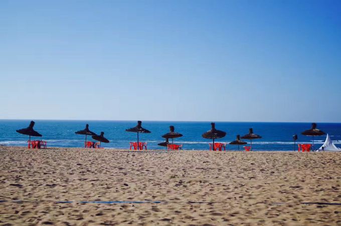 卡萨的海滩,对面是浩淼的大西洋,不得不说卡萨是个非常宜居的城市,由于海风的原因冬暖夏凉,炎热的6月份走在城市任何角落基本都能感觉的凉凉的海风,而马拉喀什最高气温能到四十多度;现在进入了冬季,卡萨的温度还是和夏天时差不多,而马拉喀什的气温有时候能低到零下。。