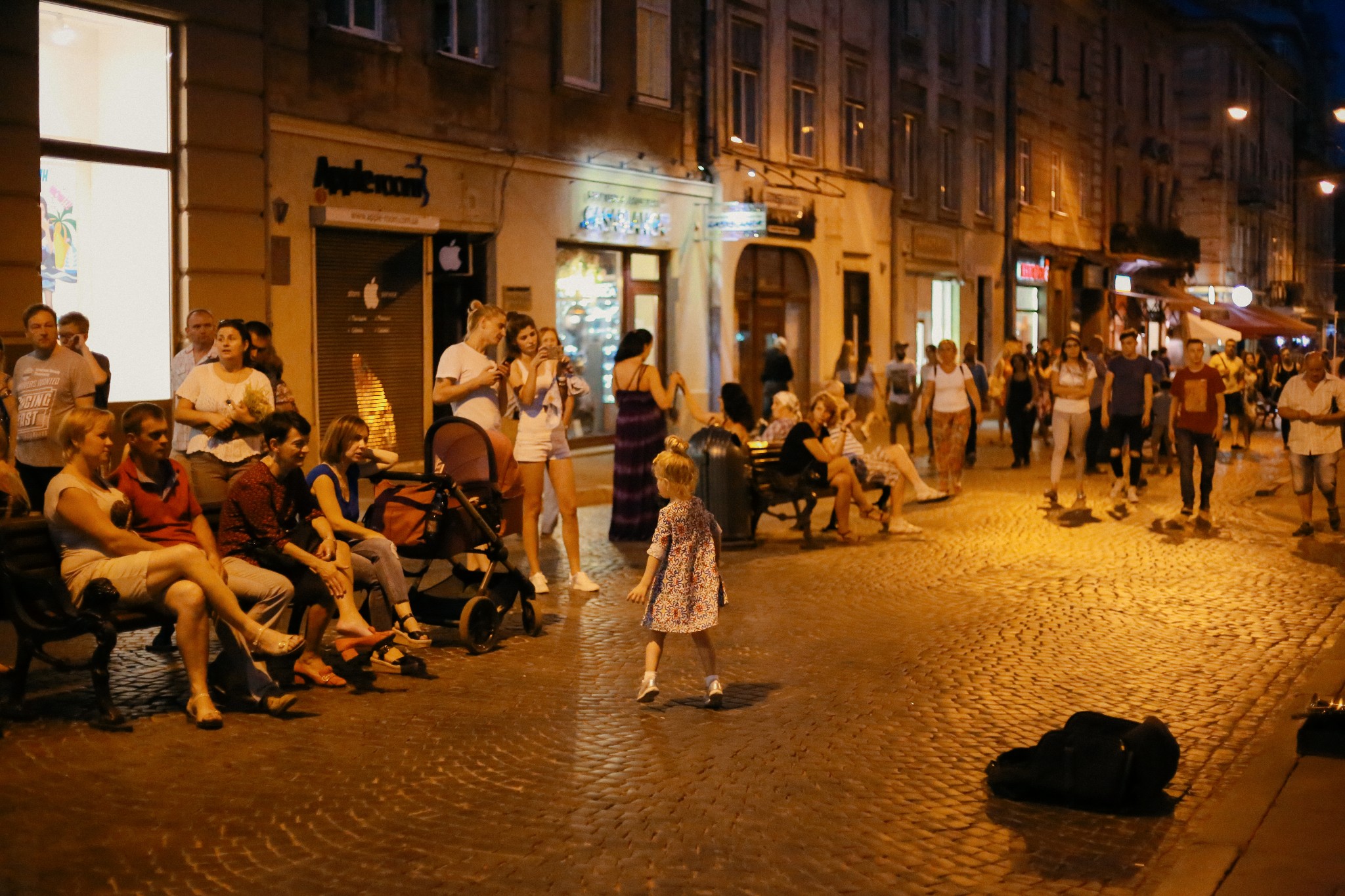 ▲到了深夜,昏黄的路灯照在古老的砖铺马路上,穿越那些群聚在商店门口不怀好意的酒鬼,穿越那些迟归的破旧电车,执意再去自由大道看在街头翩翩起舞的乌克兰少女