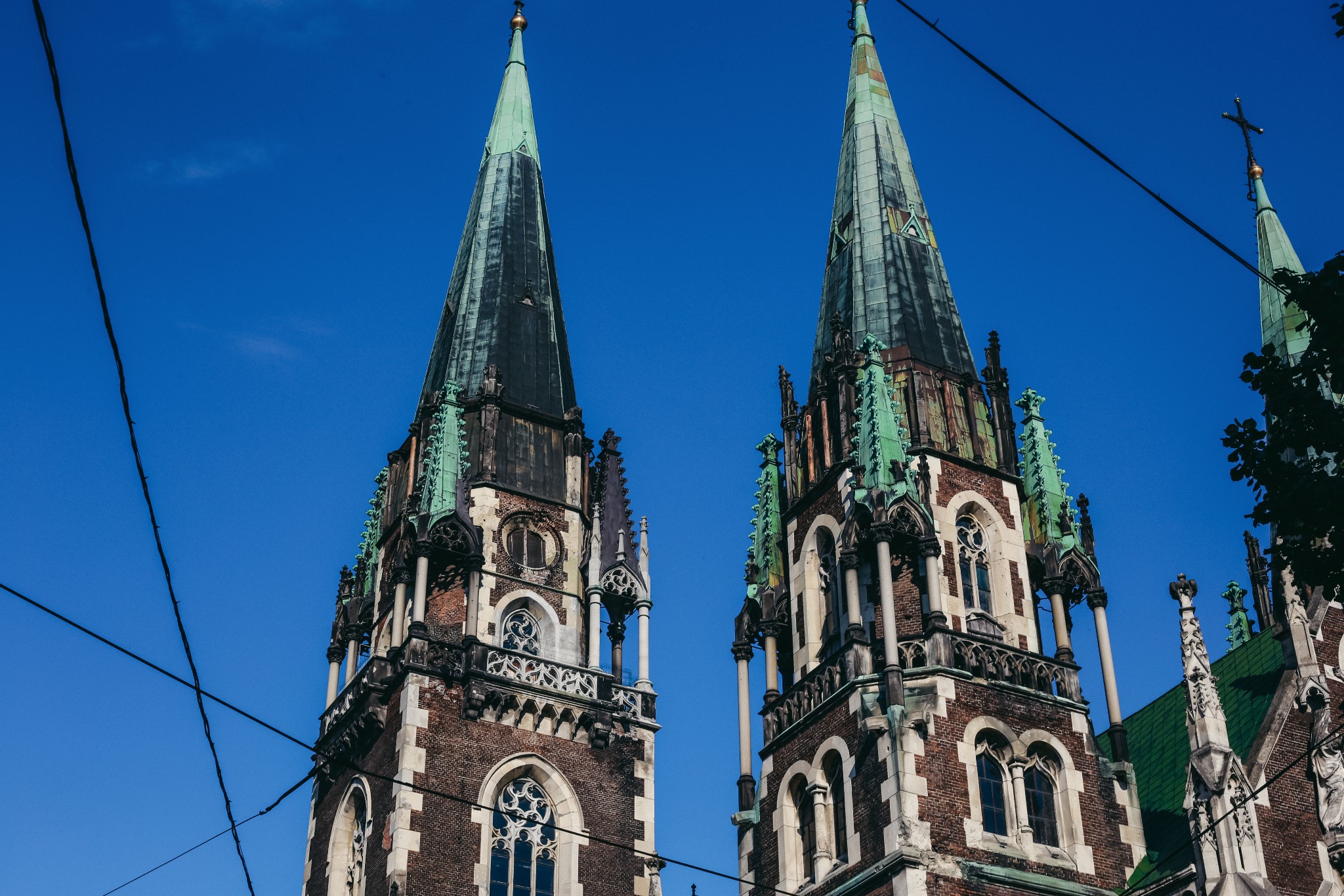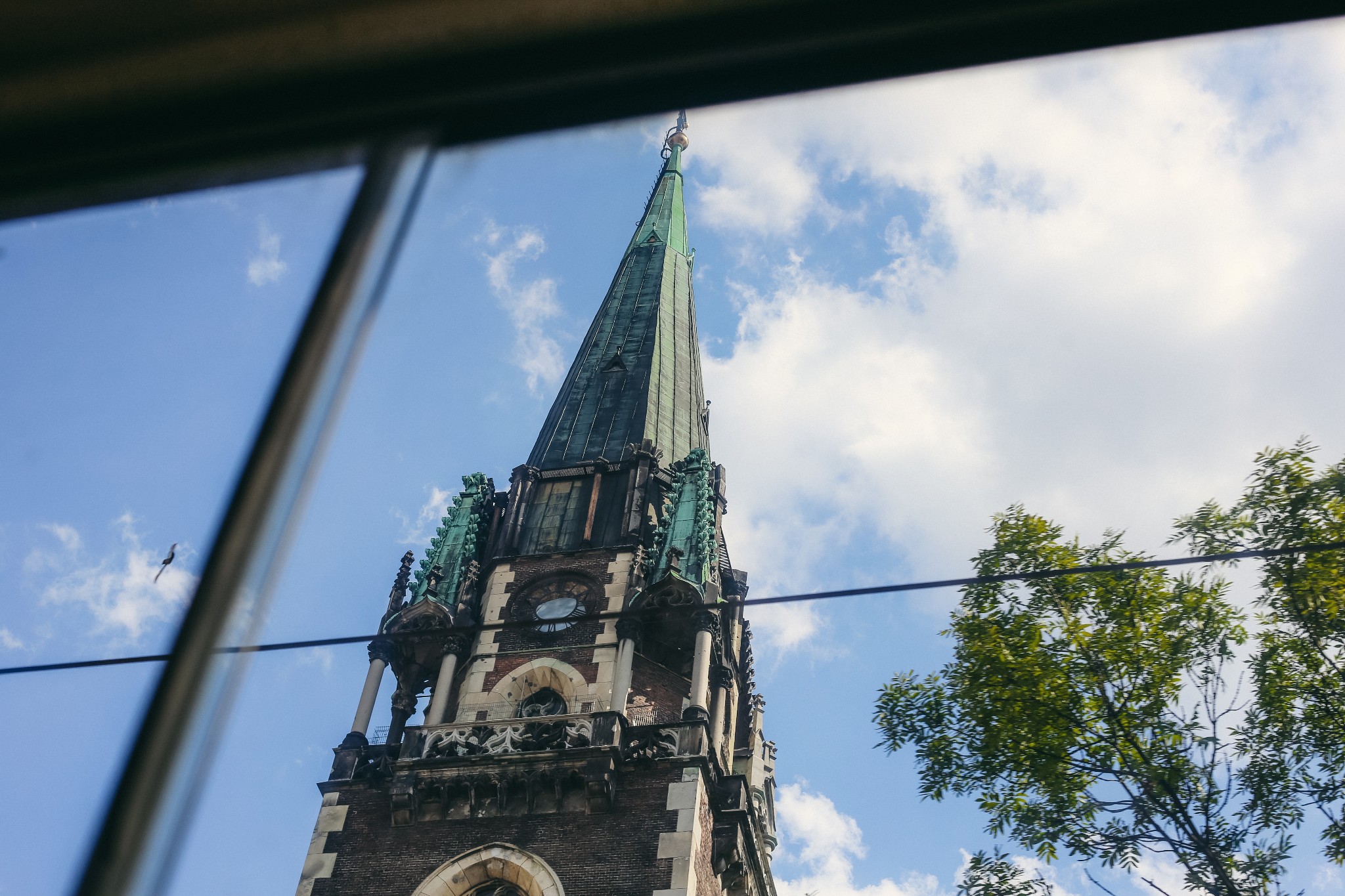 你几乎抬头就能看见不远处的圣奥尔加圣伊丽莎白教堂,那个孔雀绿的尖顶,正在刺破黎明迎接远方来的客人,它离火车站不算,颜色在阳光下十分醒目,甚至讨喜,这个算是当地一个地标性建筑。